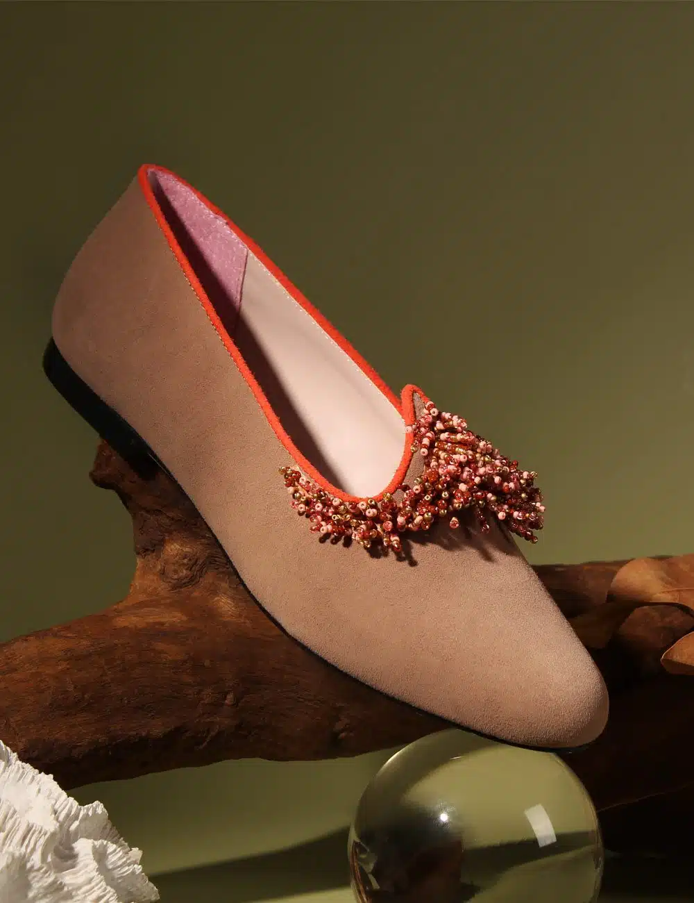 APROVEITE, TEMOS POUCOS PARES! Nossos Loafers já são modelos consagrados da marca, cheios de personalidade e muito conforto. Nesta coleção cápsula Sotto il Mare, o fundo do mar é a inspiração de todos os modelos, o loafer possui enfeites de pedrarias coloridas bordados à mão, cabedal todo em camurça de cabra macia na cor nude, com destaque no vivo em camurça goiaba. Para garantir ainda mais conforto e qualidade, sua sola e forro são também em couro com acabamento soft na palmilha. Fica perfeito para elevar os looks do dia a dia!