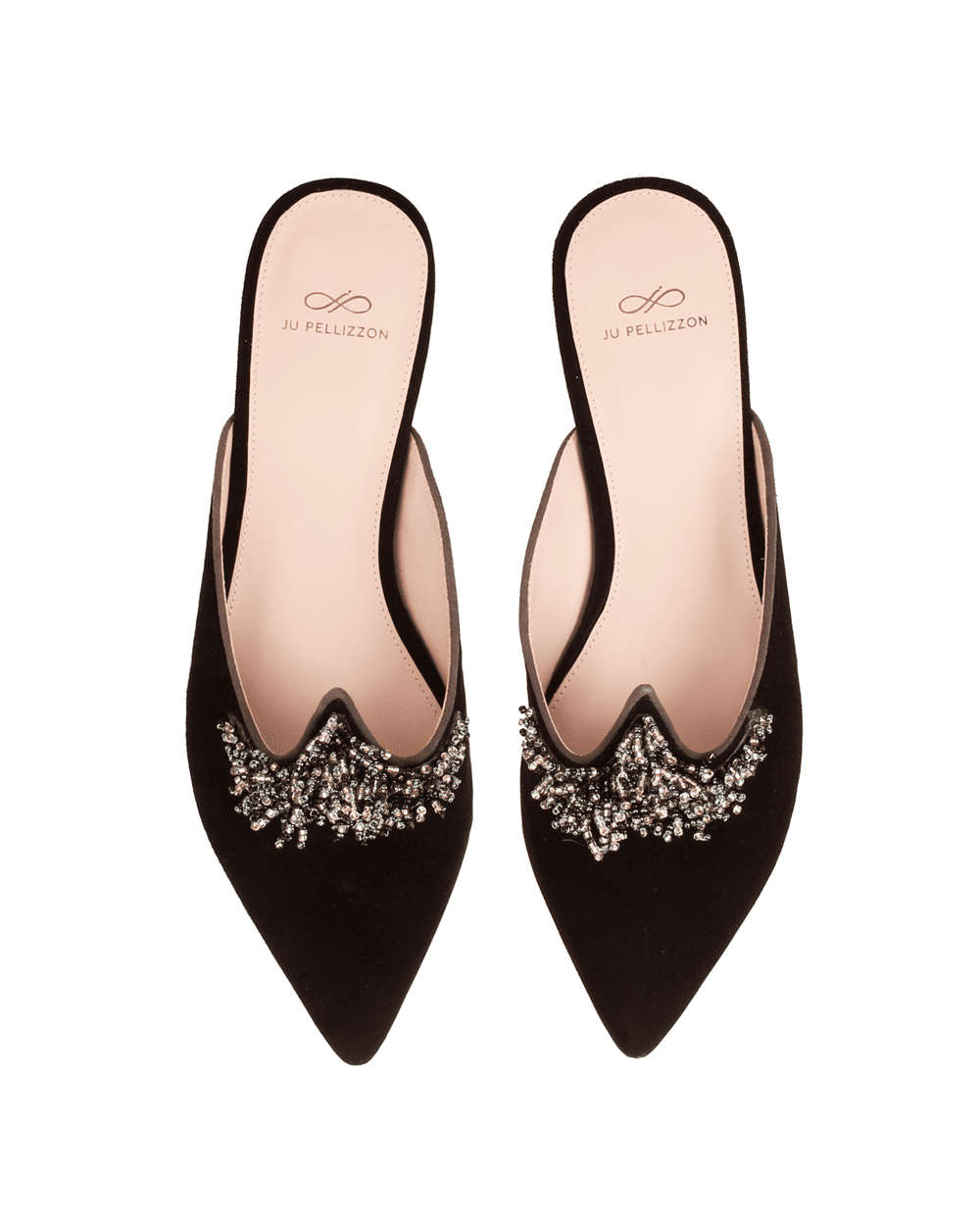 APROVEITE, TEMOS POUCOS PARES! Nossas Mules, assim como os loafers, são modelos consagrados e retornam com modelagem atualizada: deixamos as cavas do decote mais fechadas e com biqueira afunilada para mais sofisticação. O detalhe em bico do cabedal, vem de referências do Oriente Médio, como uma homenagem a minha avó materna que tanto se orgulha de seus ancestrais, e se tornou a marca registrada dos nossos loafers e mules! Nesta coleção cápsula Sotto il Mare, me inspirei nas anêmonas do mar e corais marinhos, os corais são animais que também se multiplicam, assim como as anêmonas, porém de um jeito diferente, eles vivem em colônias de mesmos animais! Também encontrei um significado super inspirador, pois nos reafirma a importância de união e compartilhamento entre nós! Criei corais de pedrarias em degradês de preto bordados à mão, uma população de corais bem volumosa e vibrante! O cabedal todo em camurça de cabra macia na cor preta maravilhosa! Para garantir ainda mais conforto e qualidade, sua sola e forro são em couro com acabamento soft na palmilha. As mules acompanham nossos cordões de seda que são removíveis a partir de um sistema exclusivo de fechamento que criamos, podendo usar com e sem, além deste cordão ter diversos outros usos como um acessório, cinto… é a sua criatividade e personalidade que mandam!