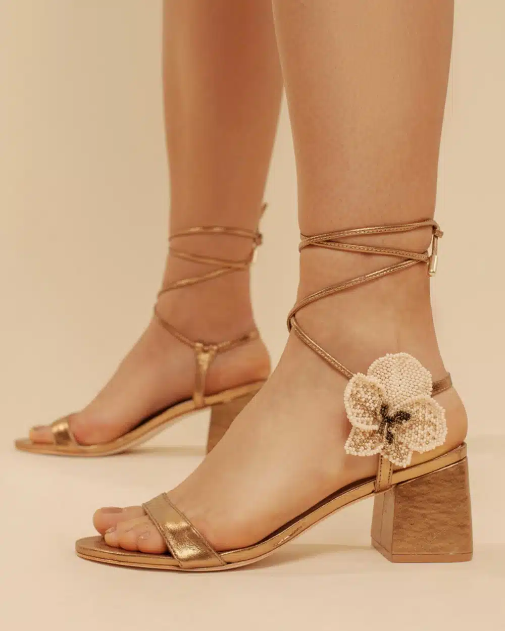 APROVEITE, ÚLTIMO PAR! A Sandália Orquídea é um modelo super especial para nós, pois une a sofisticação e primor do bordado manual à versatilidade e conforto do salto médio. Inspirada nas orquídeas, que simbolizam a elegância, a pureza e a feminilidade, além de sua beleza exótica única. Feita em couro metalizado ouro velho, que dá destaque ao primoroso trabalho manual em forma de flor. A técnica realizada neste trabalho manual é muito refinada e única, pedrarias são trançadas uma a uma à mão para este efeito 3D maravilhoso! Salto esculpido na madeira e forrado no mesmo couro do cabedal. Sola e forro em couro para ainda mais conforto e qualidade! Modelo que eleva qualquer look!