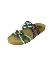 Somos apaixonados pela vida marinha e belezas do fundo do mar! O Slide Nós Infinito foi inspirado nos nós náuticos usados pelos marinheiros, feito com cordões acetinados moldados à mão, com uma combinação de cores que é a cara do verão e de qualquer estação! Palmilha anatômica que molda nos pés toda forrada com camurça e os cordões que também seguem as curvas do pé, muito conforto aliado ao estilo! Cordões na combinação de cores verde militar, roxo e verde menta. Fica perfeito com vestidos leves até um jeans destroyed para um look super cool e cheio de personalidade.